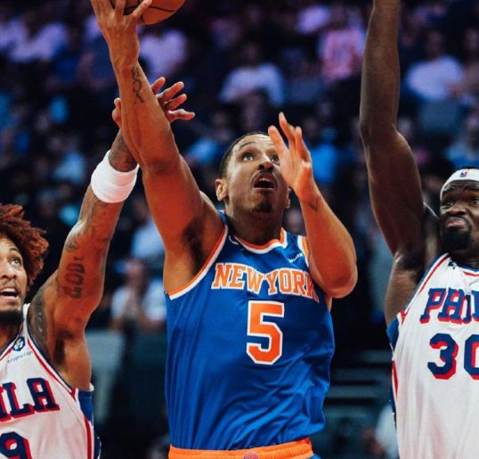 次节比赛,尼克斯继续扩大11分领先优势,巴洛中投追分,尼克斯连得5分扩大14分优势打停76人。76人连追4分,尼克斯连得5分扩大15分优势,76人一波9-2攻势追分,尼克斯连得4分。马克西三分命中,唐斯连得4分,76人冲击内线追分,布伦森连得3分,尼克斯单节28-24再赢4分,上半场比赛结束尼克斯扩大60-47领先76人13分优势。
