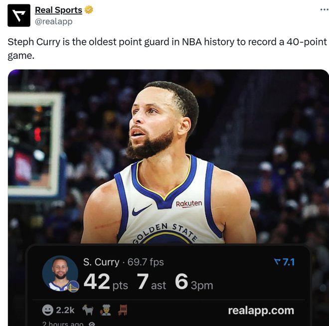 同时37岁236天的库里成为NBA历史上单场砍下40+最老的控卫球员。